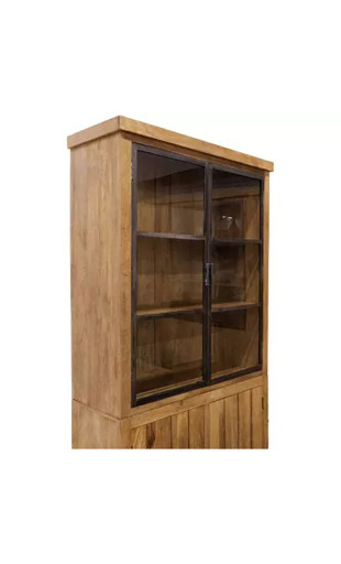 Réalisée en bois de manguier massif, reconnu pour sa solidité et son grain unique, la vitrine Ruv se distingue par son authenticité et sa durabilité. Elle est équipée de 2 portes vitrées, idéales pour exposer vaisselle, verrerie ou objets décoratifs, et de 2 portes pleines, parfaites pour ranger discrètement les éléments du quotidien.