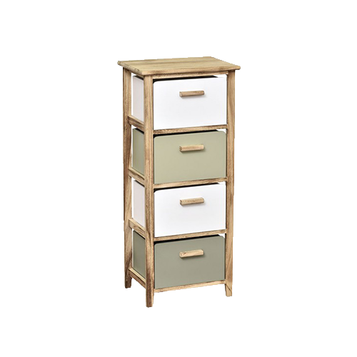 Facilitez vos rangements en installant ce meuble. Meuble en Paulownia. 4 tiroirs. Livré monté. Poignées en métal. Hauteur - 86cm, Profondeur - 38cm, Largeur - 38cm. Couleur - Blanc et Gris. Poids - 4.5kg.