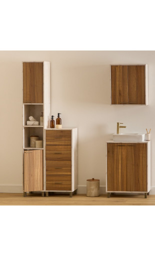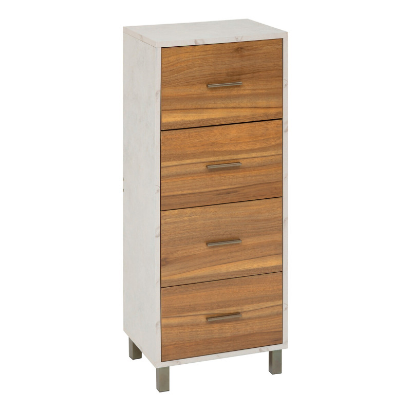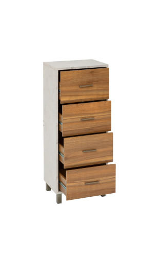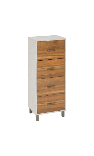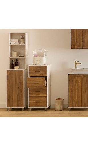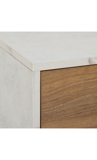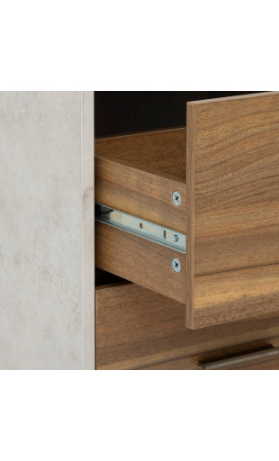 La finition effet travertin confère un style moderne et minéral, tandis que les façades bois foncé apportent chaleur et élégance. Conçu pour un usage régulier, ce chiffonnier offre stabilité, robustesse et confort d’utilisation.