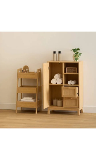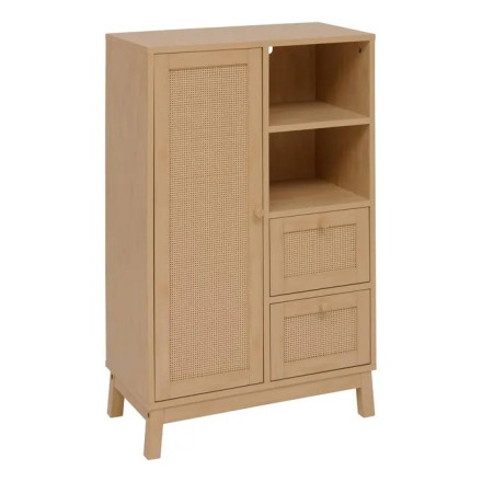 Alliez élégance naturelle et rangement fonctionnel avec le meuble de rangement Cane 5five, un meuble polyvalent pensé pour organiser votre intérieur avec style. Grâce à son décor cannage sur les façades, il apporte une touche bohème et tendance, idéale aussi bien dans une salle de bain que dans un dressing ou une chambre.