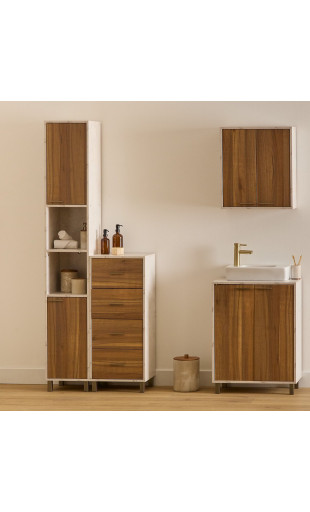 Conçu pour optimiser les espaces verticaux, ce meuble haut s’intègre parfaitement dans une salle de bain, une cuisine, un salon ou une entrée, tout en offrant une capacité de rangement pratique et modulable.
