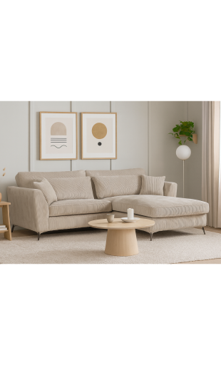 Apportez style et confort à votre salon avec le canapé d’angle mini Isla droit en velours côtelé beige. Pensé pour allier modernité et bien-être, ce modèle compact s’intègre facilement dans tout type d’intérieur, qu’il soit contemporain, scandinave ou plus classique.