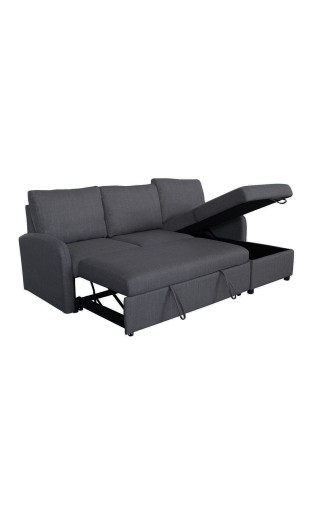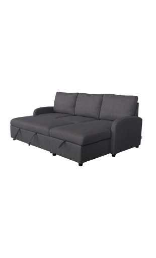 Le canapé d’angle convertible Jade gris avec coffre de rangement est un choix malin pour un intérieur à la fois élégant, confortable et pratique, pensé pour le quotidien.