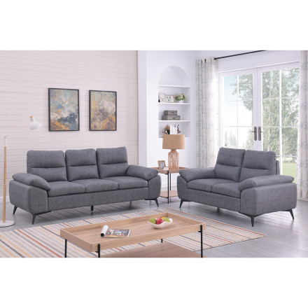 Craquez pour le canapé 2 places Soan en simili cuir gris foncé, un modèle élégant et moderne qui allie style, confort et praticité. Avec ses lignes épurées, ses pieds noirs contemporains et son revêtement simili, il apporte une touche chic à votre salon tout en restant facile à entretenir.