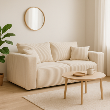 Découvrez le canapé droit 2 places en tissu côtelé Sharm beige, une véritable invitation au confort et à la détente. Avec son revêtement en tissu côtelé de haute qualité, ce canapé combine élégance et douceur pour un style visuel aussi agréable que son toucher.