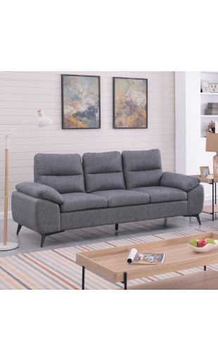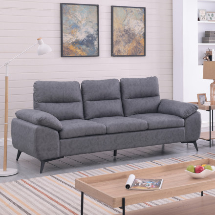 Craquez pour le canapé 3 places Soan en simili cuir gris foncé, un modèle élégant et moderne qui allie style, confort et praticité. Avec ses lignes épurées, ses pieds noirs contemporains et son revêtement simili, il apporte une touche chic à votre salon tout en restant facile à entretenir.