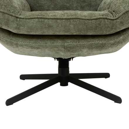 Doté d’un revêtement tissu chenille coloris vert cèdre et d’un rembourrage généreux, le fauteuil Stelan garantit une assise confortable et un maintien optimal, que ce soit pour lire, travailler ou simplement se détendre.