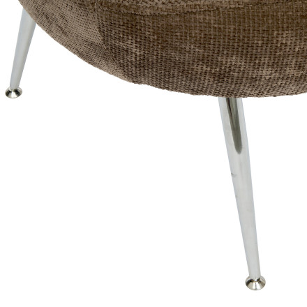 Les pieds en métal finition chrome apportent une touche lumineuse et élégante tout en assurant une parfaite stabilité. Leur aspect brillant contraste subtilement avec la texture du tissu, pour un rendu moderne et haut de gamme.