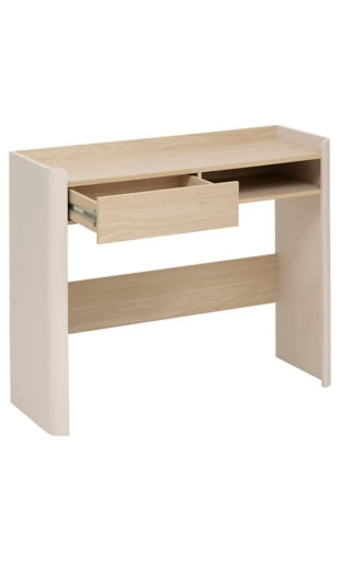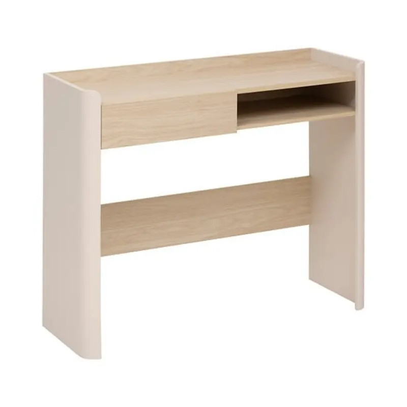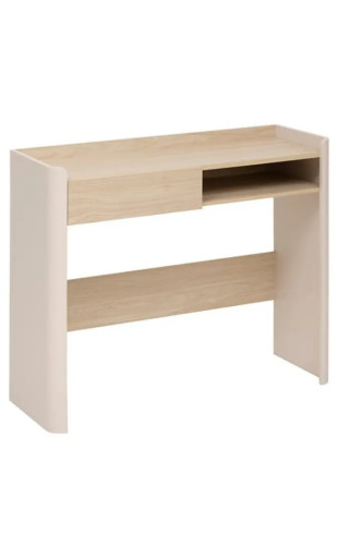 Cette console 1 tiroir peut également être utilisée comme bureau d’appoint, idéal pour le télétravail occasionnel, un espace devoirs ou un coin créatif. Son large plateau de 100 cm permet d’installer un ordinateur portable, une lampe ou des accessoires de bureau en toute simplicité.