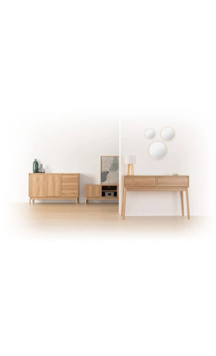 Apportez une touche de style et de fonctionnalité à votre intérieur avec la console Abana 2 tiroirs coloris naturel de la marque 5five.