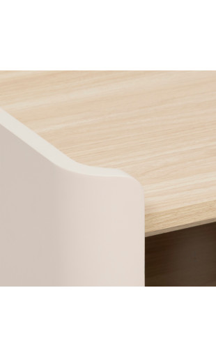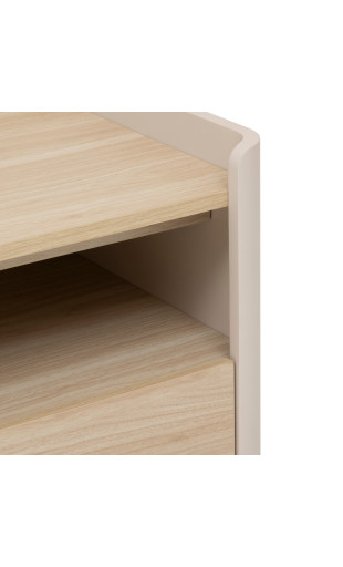 Alliant élégance et fonctionnalité, le meuble TV Roundy 5five 120 cm est la solution idéale pour organiser votre espace multimédia avec style. Son design sobre aux lignes arrondies, signature de la collection Roundy, s’accompagne d’un coloris ivoire doux associé à un décor bois clair, pour une ambiance moderne, chaleureuse et intemporelle.