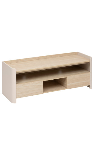 Ce meuble télé 120 cm est pensé pour répondre aux besoins du quotidien. Il dispose de deux tiroirs spacieux pour ranger télécommandes, DVD, jeux ou accessoires électroniques, ainsi que d’une niche centrale ouverte idéale pour accueillir box, console ou lecteur multimédia.