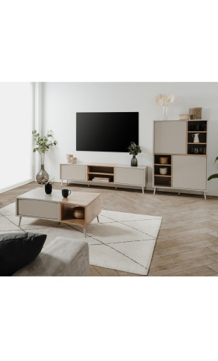 Pensé pour accueillir vos équipements multimédias, le meuble TV Sinop propose :