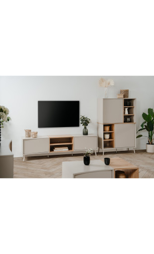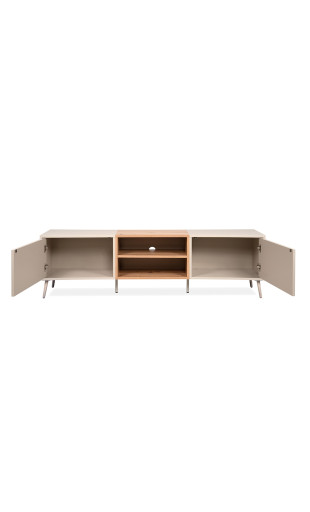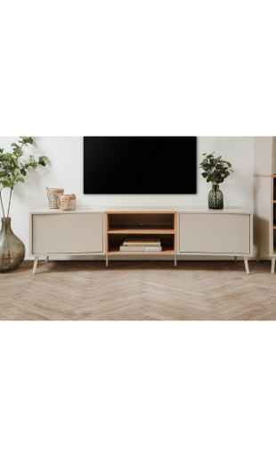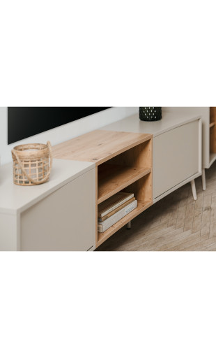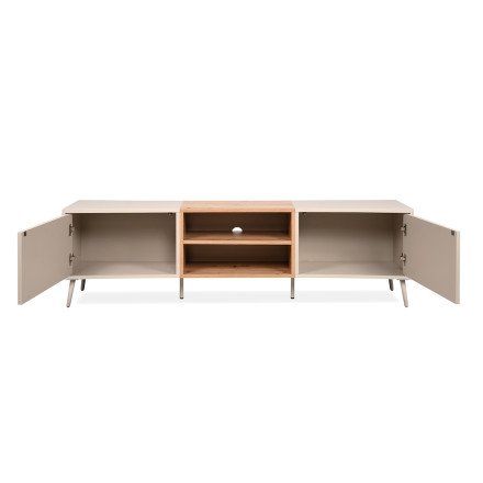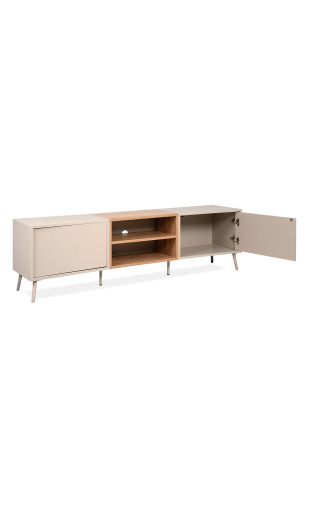 Le meuble TV Sinop se distingue par ses lignes arrondies et fluides, qui apportent douceur et caractère à votre intérieur. Son design sans poignées, équipé d’un système push to open, renforce son allure minimaliste tout en offrant une utilisation simple et confortable au quotidien.