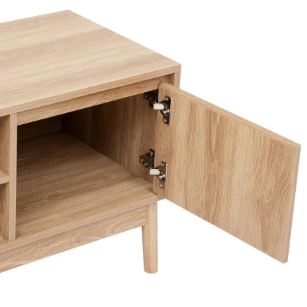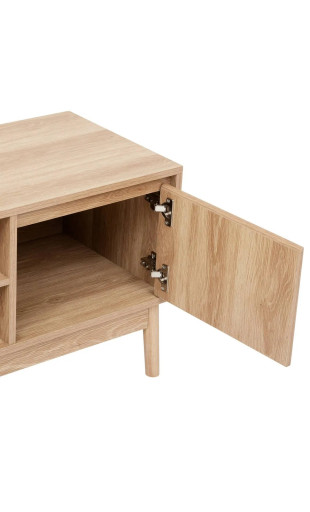Pratique et bien pensé, le meuble TV Abana est équipé de charnières avec système de fermeture douce, assurant un confort d’utilisation et une meilleure durabilité.