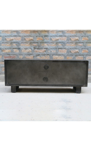 Meuble de télévision de la collection Jodhpur en métal et bois. Le meuble est en 100% métal sauf les tiroirs qui sont en bois de manguier.