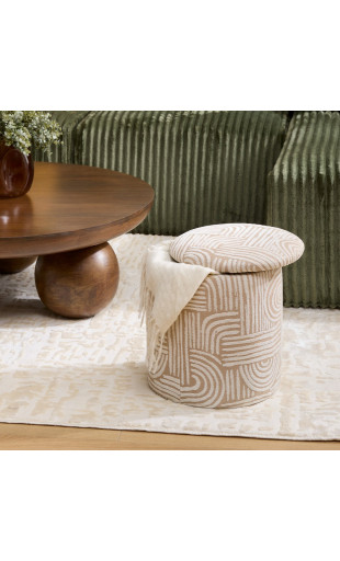 Compact, élégant et multifonction, le pouf coffre Nubo Ø31 cm de la marque Atmosphera est l’allié idéal pour optimiser votre intérieur avec style. Son revêtement en chenille beige, sublimé par des motifs abstraits beige et blanc, apporte une touche décorative douce et contemporaine à toutes les pièces de la maison.