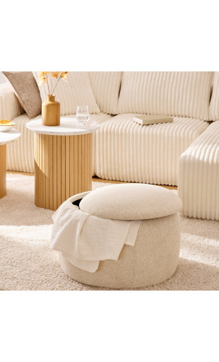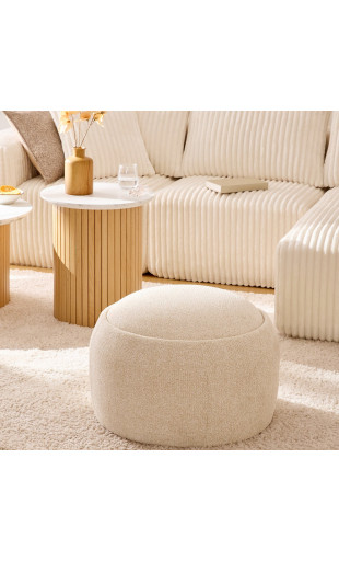 Avec sa forme ronde et généreuse, le pouf Elior séduit par son allure douce et contemporaine. Son revêtement en bouclette beige, très apprécié pour son aspect cocooning et chaleureux, apporte une touche de modernité tout en s’intégrant facilement dans une décoration scandinave, bohème ou contemporaine.