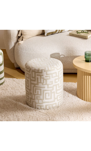 Avec sa forme cylindre classique, le pouf Delor s’intègre facilement dans tous les styles d’intérieur : moderne, bohème, scandinave ou contemporain. Ses motifs abstraits apportent du caractère et une dimension artistique, tout en conservant une palette de couleurs douces et élégantes.