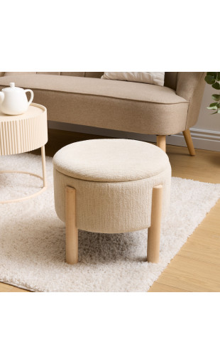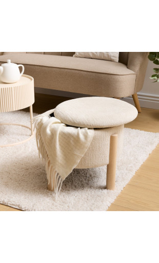 Pratique, élégant et multifonction, le tabouret coffre Elki Ø45,5 cm de la marque Atmosphera est la solution idéale pour allier assise d’appoint et espace de rangement discret. Son revêtement en chenille beige et ses pieds en bois d’hévéa apportent une touche chaleureuse et raffinée à votre intérieur.