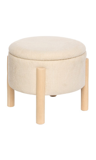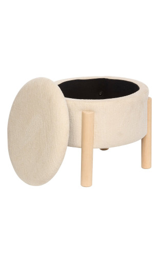Avec son diamètre de 45,5 cm, ce petit tabouret coffre trouve facilement sa place même dans les petits espaces. Il peut être utilisé comme assise d’appoint, repose-pieds ou élément décoratif.