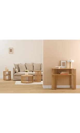 La tablette bout de canapé est le choix parfait pour ceux qui recherchent un meuble compact, décoratif et fonctionnel, alliant design tendance en tasseaux et rangement malin.