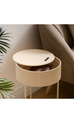 La table à café Juna se distingue par son plateau cylindrique texturé et son piètement fin en métal, créant un équilibre harmonieux. Son coloris beige doux et lumineux s’accorde facilement avec une décoration scandinave, moderne ou épurée, et apporte une note chaleureuse à votre intérieur.