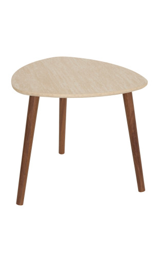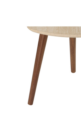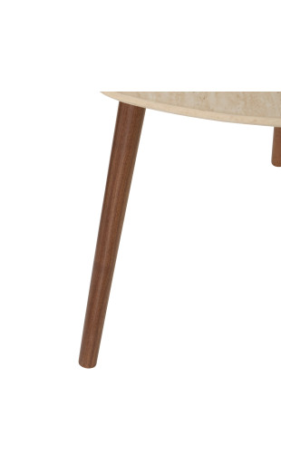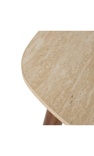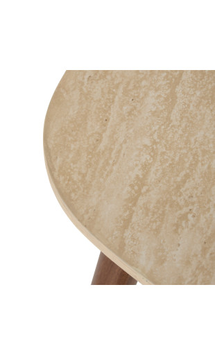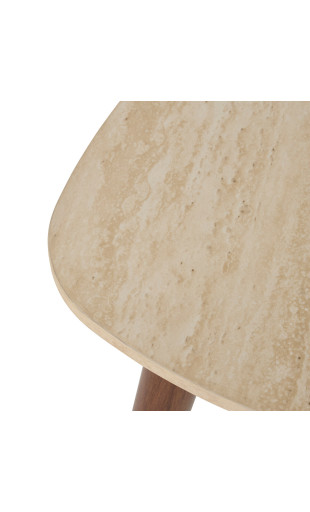 Les plateaux sont conçus en MDF avec placage papier effet travertin, reproduisant fidèlement l’aspect naturel et texturé de la pierre. Ce procédé permet de profiter du rendu élégant du travertin sans les inconvénients du matériau naturel : absence d’aspérités, poids allégé, entretien facile au quotidien.