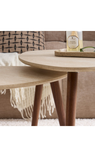 Apportez une touche minérale chic et tendance à votre intérieur avec le lot de 3 tables à café Mileo effet travertin de la marque Atmosphera. Modulables et élégantes, ces tables basses s’adaptent à tous les espaces tout en offrant l’esthétique du travertin, sans ses contraintes.