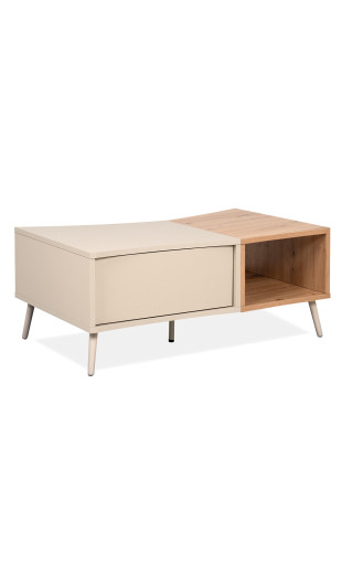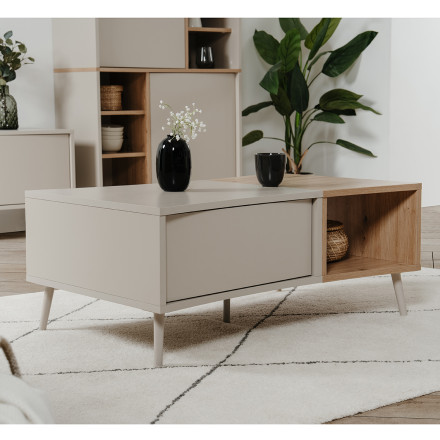 Apportez une touche de modernité et d’élégance à votre salon avec la table basse Sinop, un meuble au design incurvé original, conçu pour allier esthétique contemporaine et fonctionnalité. Son association de coloris sable et effet chêne artisan crée une atmosphère chaleureuse et naturelle, idéale pour sublimer votre espace TV.