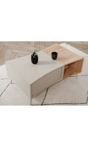 Cette table de salon Sinop se distingue par ses lignes arrondies et fluides, qui apportent douceur et caractère à votre intérieur. Son design sans poignées, équipé d’un système push to open, renforce son allure minimaliste tout en offrant une utilisation simple et confortable au quotidien.