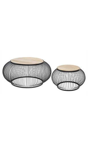 Lot de 2 tables rondes en métal et bois de manguier massif de la marque Atmosphera.