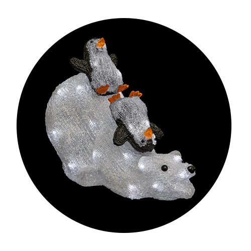 Cette magnifique maman ours et son bébé lumineuse 56LED fera merveille dans votre jardin ou votre habitation pour vous plonger dans la féerie et la magie de Noà«l ! - Ours LED. Extérieur-intérieur. 56 ampoules LED. Lumière fixe, ampoules blanches. 5m de fil. Les lampes sont non remplaçables. A brancher sur secteur. Matières : Acrylique + PVC + Cuivre. Hauteur - 44cm, Profondeur - 23cm, Largeur - 24cm. Couleur - LED blanches. Poids - 2,6 kg.