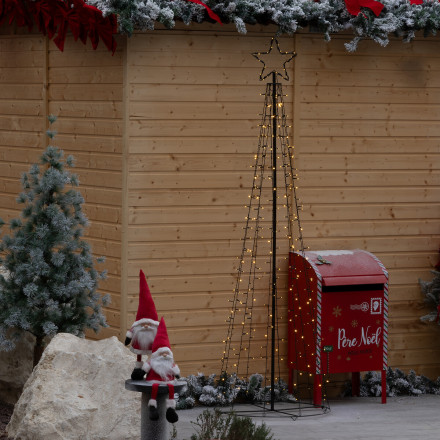 Composé de 320 LED blanc chaud et d’une étoile scintillante au sommet, ce sapin en forme de cône diffuse une lumière douce et chaleureuse pour une ambiance féérique dès la tombée de la nuit.