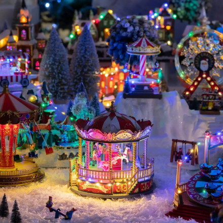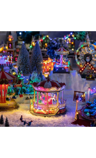 Pour usage intérieur uniquement. Équipé d'ampoules LED. Ampoules non remplaçables. Typique des fêtes, ce manège enchantera petits et grands !