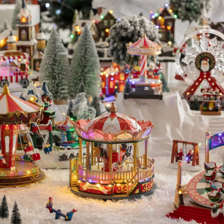Carrousel de Noël animé, lumineux et musical qui donnera à votre déco de fêtes de fin d'année un style nouveau.