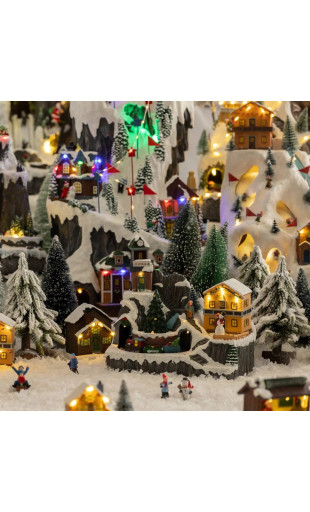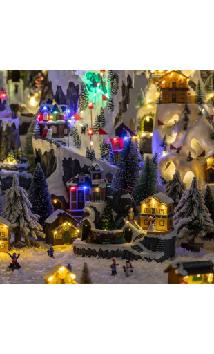 Village composé d'un chalet de montagne + un tunnel dans lequel roule un petit train + une guérite de location de ski.