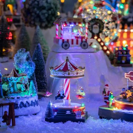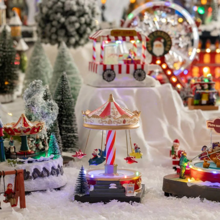 Ce manège animé, lumineux et musical pour Noël saura apporter à votre habitation la chaleur et la féerie si caractéristique des fêtes de fin d'année.