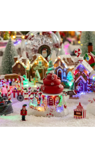 Ajoutez une touche gourmande et festive à votre décoration avec notre village de Noël cupcake du Père Noël lumineux.