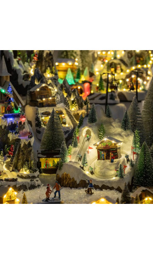 Plongez en plein hiver avec ce village de Noël lumineux et animé représentant une petite station de ski avec son chalet de location et sa piste rouge !