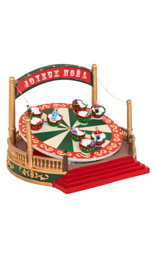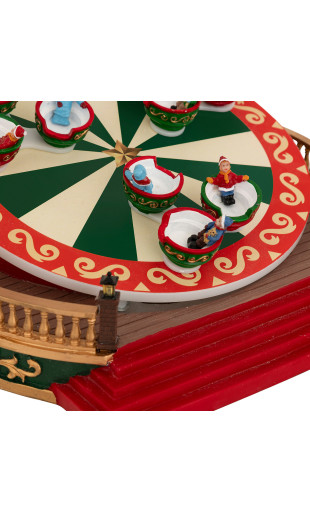 Plongez dans la magie des fêtes avec ce village lumineux manège tasses animé et musical, véritable pièce maîtresse de votre décoration de Noël.