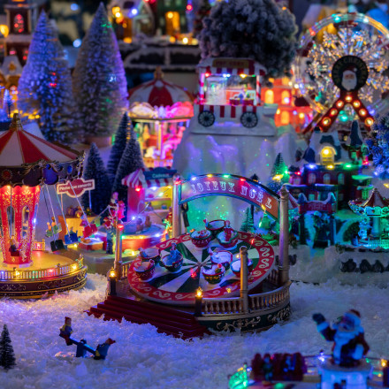 Grâce à ses 14 LED multicolores, son mouvement rotatif réaliste et sa mélodie festive entraînante, ce décor miniature apporte une touche de féerie et de chaleur à votre intérieur.