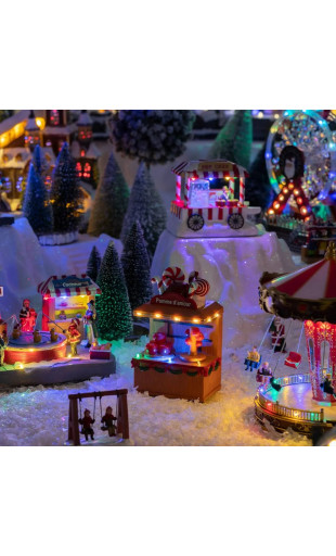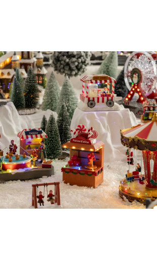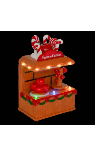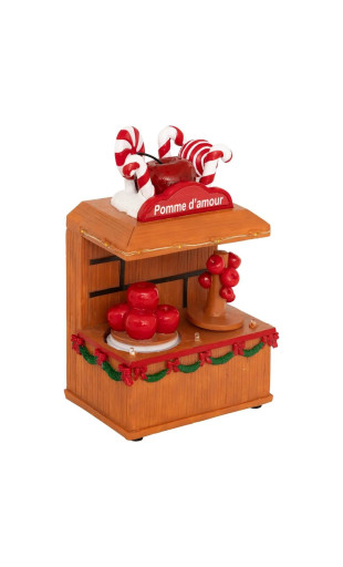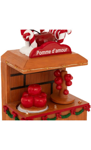 Ce village de Noël lumineux “Pomme d’Amour” recrée la magie d’une fête foraine hivernale. Placez votre village musical lumineux sur un buffet, une console, ou près du sapin pour créer un univers enchanteur. Il se marie à merveille avec d’autres éléments animés : manèges, grande roue, patinoire ou chalets lumineux.
