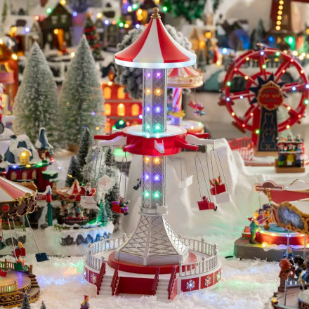 Que vous soyez collectionneur de villages miniatures ou simplement à la recherche d’une décoration de Noël originale et animée, ce manège chaises volantes séduira toute la famille et émerveillera vos invités.