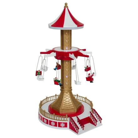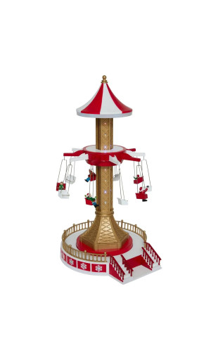 Apportez la magie des fêtes dans votre intérieur avec ce manège chaises volantes lumineux et animé. Véritable pièce maîtresse d’un village de Noël miniature, il séduit par ses détails soignés, ses effets lumineux et sa mélodie entraînante qui plongera petits et grands dans l’ambiance féerique de Noël.