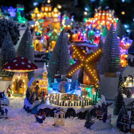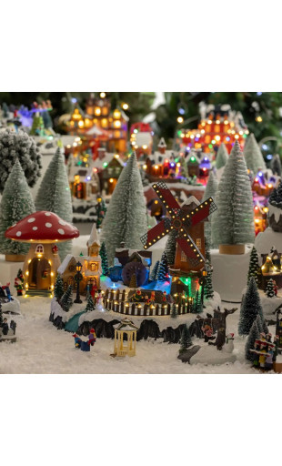Découvrez ce grand village de Noël avec son moulin lumineux et animé.