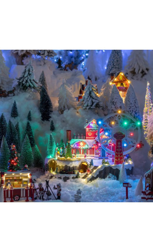 Très coloré, son petit train et sa grande roue se mettront en route une fois branché. Les lumières brilleront pour vous plonger totalement dans l'univers magique et féerique de Noël.