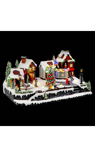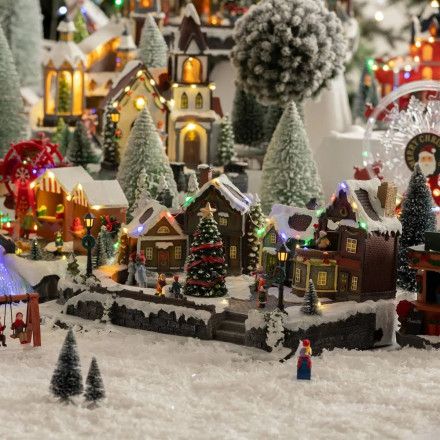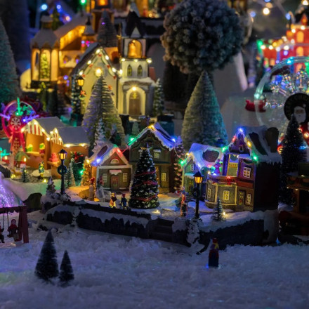 Plongez dans l'ambiance des fêtes de fin d'année avec ce village lumineux représentant une rue piétonne en hiver.