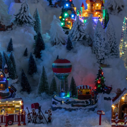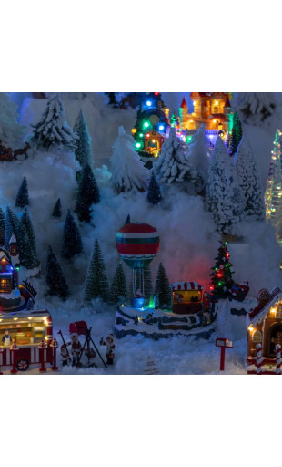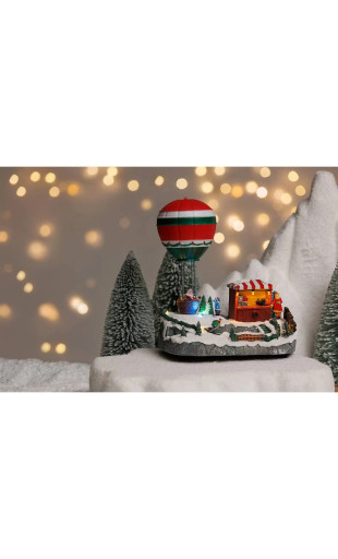 Pour s'évader un peu dans la magie de Noël... Découvrez le village de Noël "Stand de montgolfière" lumineux et animé.