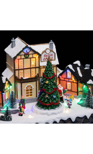 Apportez une touche féérique à votre décoration de Noël avec ce village lumineux animé représentant un charmant salon de thé enneigé. Ses détails raffinés, ses lumières étincelantes et ses animations donneront vie à votre intérieur pendant les fêtes.